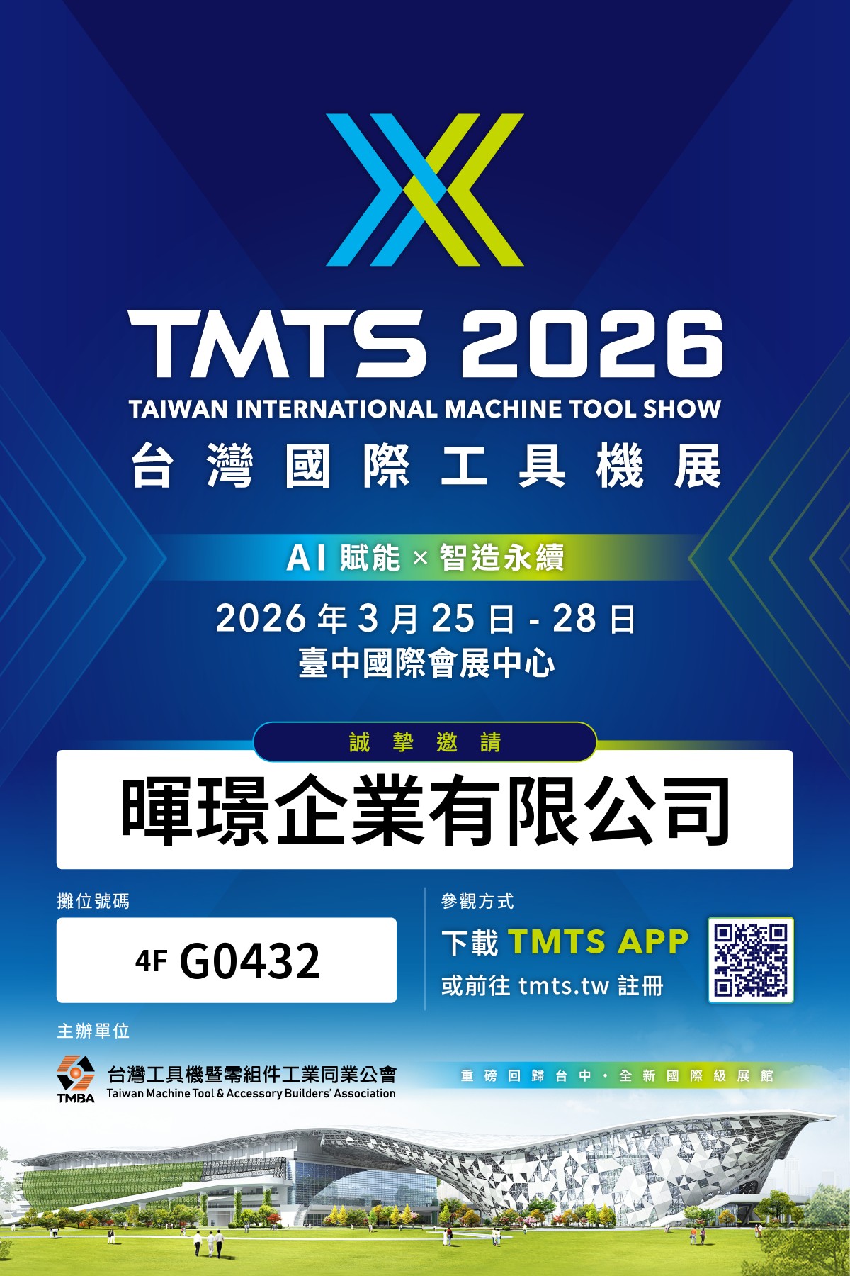 誠摯邀請您蒞臨參觀 TMTS 2026 台灣國際工具機展,並蒞臨本公司攤位交流指教。